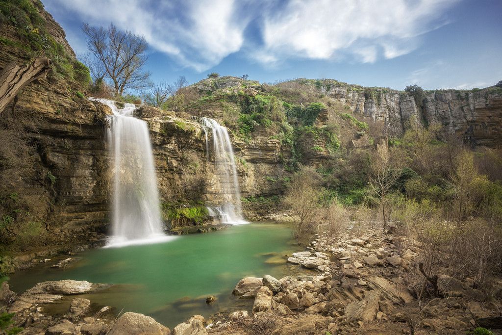 A Corleone, nel cuore dell’entroterra della provincia di Palermo, si trova la bellissima Cascata delle due Rocche, formata dal salto del fiume San Leonardo, un affluente del fiume Belice. Alta circa 4 metri, si trova a pochi passi dal centro storico in un contesto che per le sue caratteristiche morfologiche è chiamato Canyon e sul quale si possono ammirare anche i resti di un acquedotto forse di origine medievale. il sito è stato tra i più votati della campagna "luoghi Del cuore" in Sicilia ed il secondo come luogo d' acqua. Ai piedi della cascata trovasi un mulino ad acqua. Il periodo nel quale la cascata dà il meglio di se sono i mesi da Gennaio ad Aprile, ma anche in autunno quando piove in maniera copiosa. Attorno al Canyon vi sono sentieri, non facili da percorrere, dai quali si ha una veduta piuttosto suggestiva. Una strada collega in salita al Convento del SS Salvatore, altro luogo suggestivo da visitare. Un unicum naturalistico e architettonico degno di una gita.